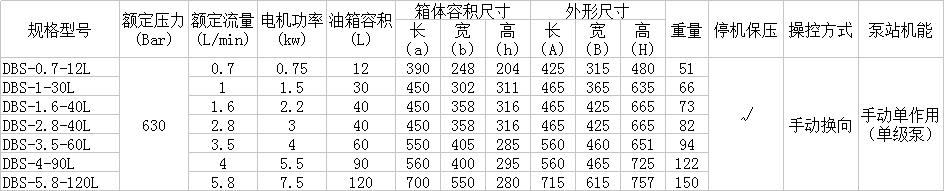 DBS選型參數表: