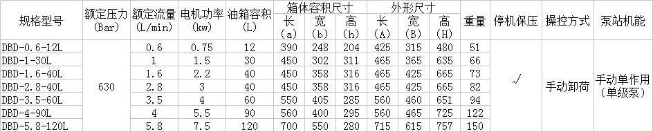 DBD選型參數表: